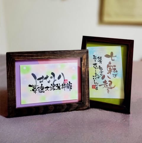 この「筆文字アート講座」では、筆ペンを使って講師に基本的な線の書き方を教わることができます。その後書く練習をし、最後に自分が書きたい字を葉書サイズの用紙に清書し、できた作品を額に入れて完成です。用紙はパステルを使って色付けすることもできますよ。